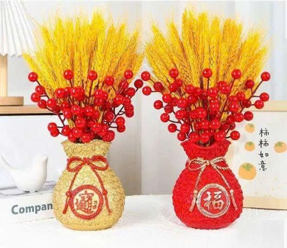 SET BÌNH HOA TÚI TIỀN KÈM CÀNH ĐÀO, BÔNG LÚA