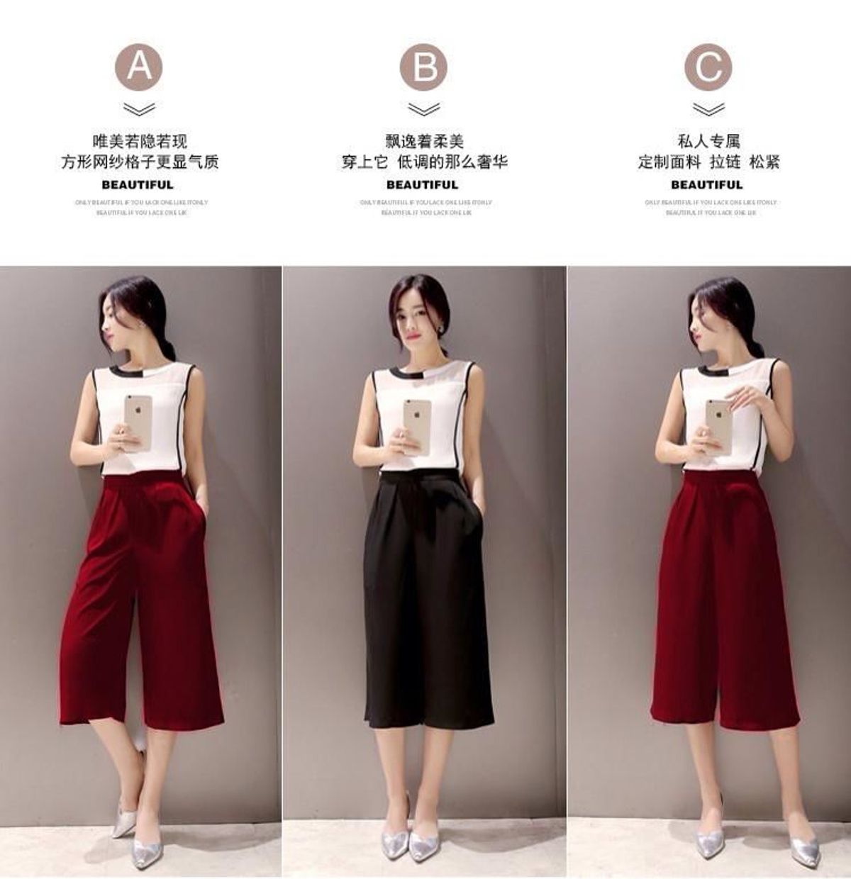 - Kiểu dáng : Quần lửng ống rộng, áo sát nách, cổ tròn