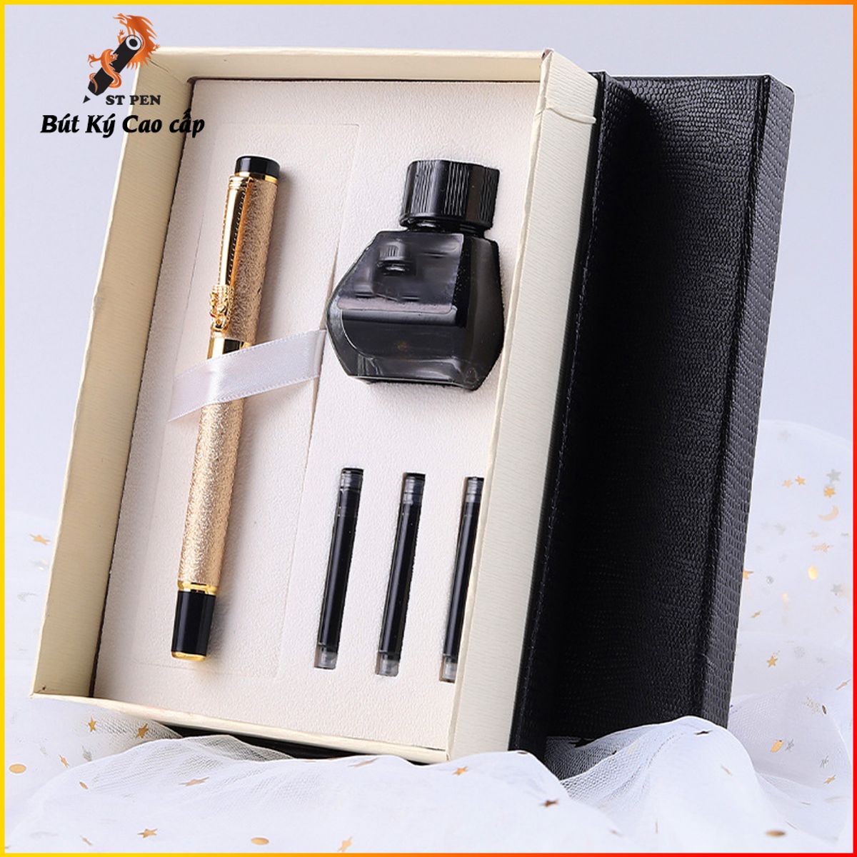 🔸Đóng gói: bộ hộp ( 01 bút máy st04,01 mực lọ 30ml,03 mực ống tiện dụng )