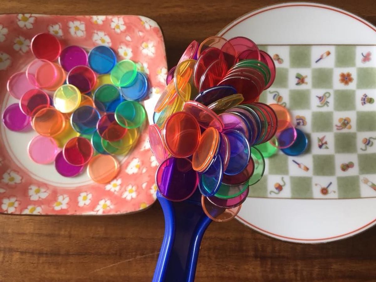 + Các hạt nhựa tròn có thể chơi trên bàn ánh sáng tạo hiệu ứng rất lung linh, đẹp mắt, khá kích thích thị giác cho bé.
