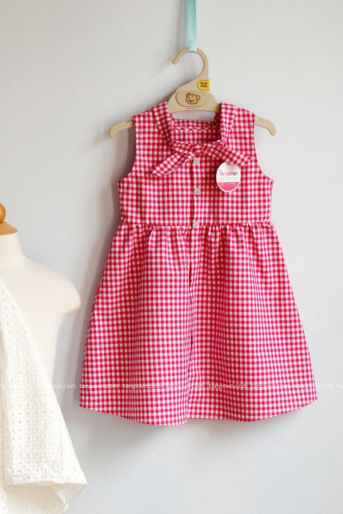 Hàng thiết kế lên form chuẩn Đầm sơ mi cách điệu phần cổ thành kiểu nơ xinh xắn cho Mẹ Và Bé