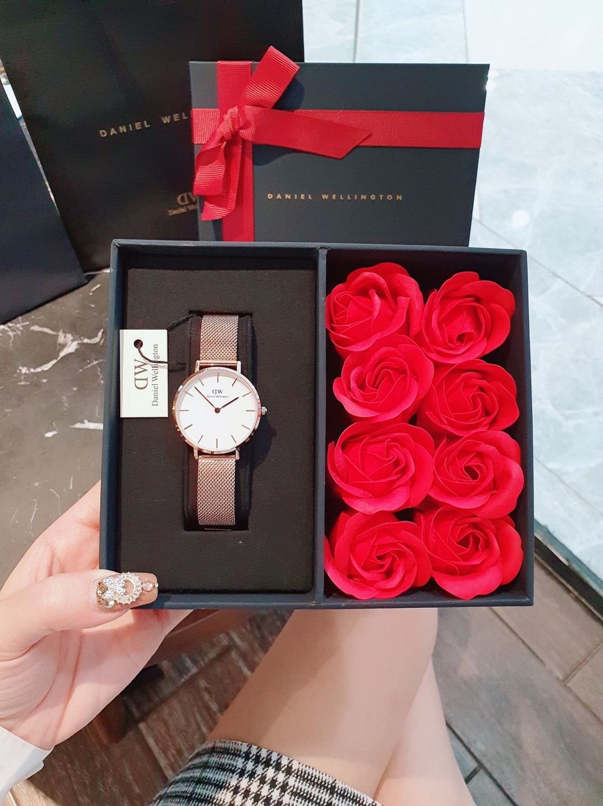 🎁bao gồm: 1 đồng hồ DW cao cấp + hoa hồng +box, túi,tag và tem kích hoạt điện tử.
