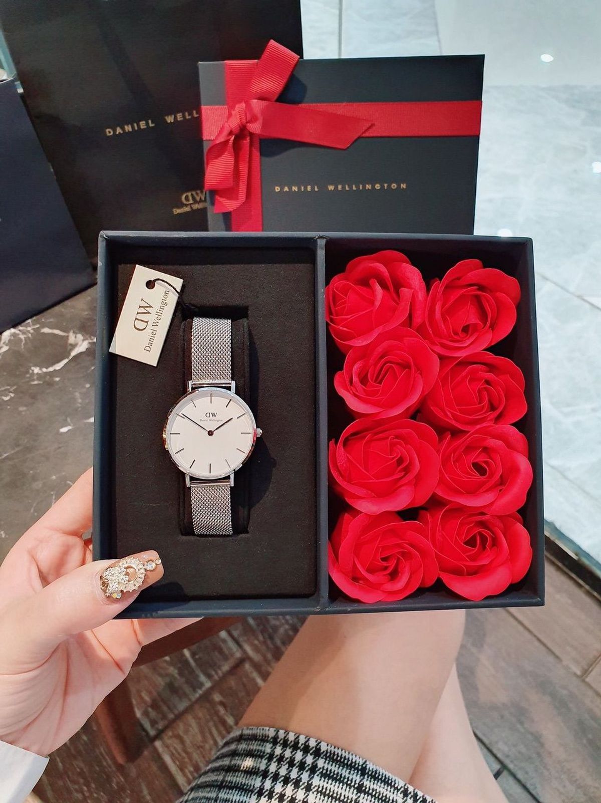 🎁bao gồm: 1 đồng hồ DW cao cấp + hoa hồng +box, túi,tag và tem kích hoạt điện tử.