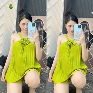 SET ĐỒ NỮ XẾP LY ÁO CỔ YẾM ĐÍNH HOA HỒNG PHỐI CHÂN VÁY - AUSA HOUSE giá sỉ - giá bán buôn
