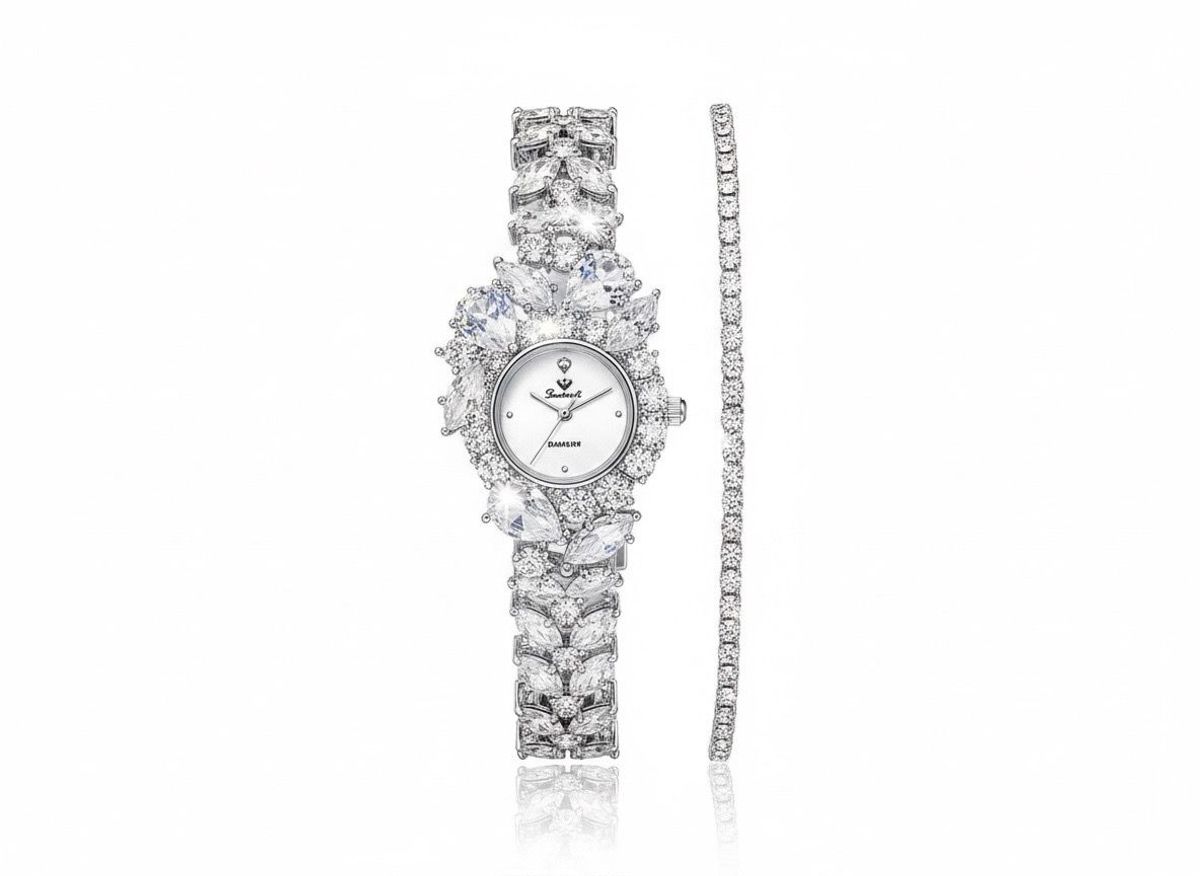 🎁SET QUÀ CHÍNH HÃNG bao gồm 1 ĐỒNG HỒ và 1 DÂY CHUYỀN full hột xoàn nhân tạo 💎💎💎