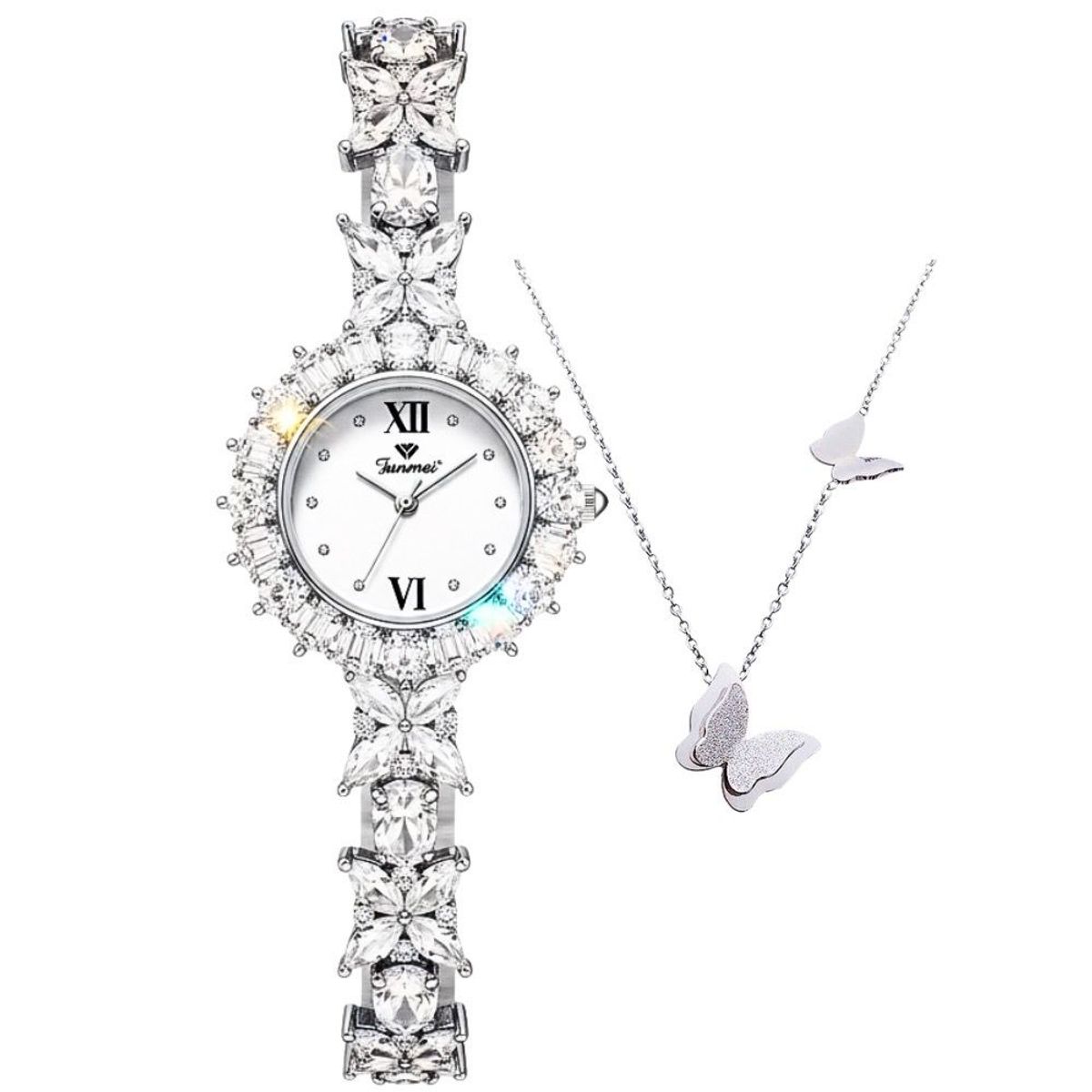 SET ĐỒNG HỒ NỮ CHÍNH HÃNG FUNMEI F2055 ĐÍNH SWAROSKI ĐI KÈM DÂY CHUYỀN FULLBOX TEM HÃNG giá sỉ/bán buôn