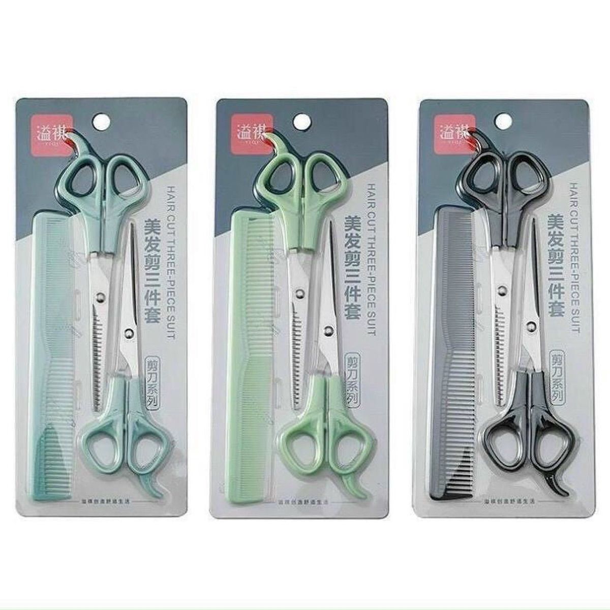 Set Kéo Cắt Kéo Tỉa 3 In 1 Cán Nhựa Tạo Mẫu Tóc Nam Nữ Hớt Kéo Cắt Tóc Bằng Thép Không Gỉ Chất Lượng Cao
