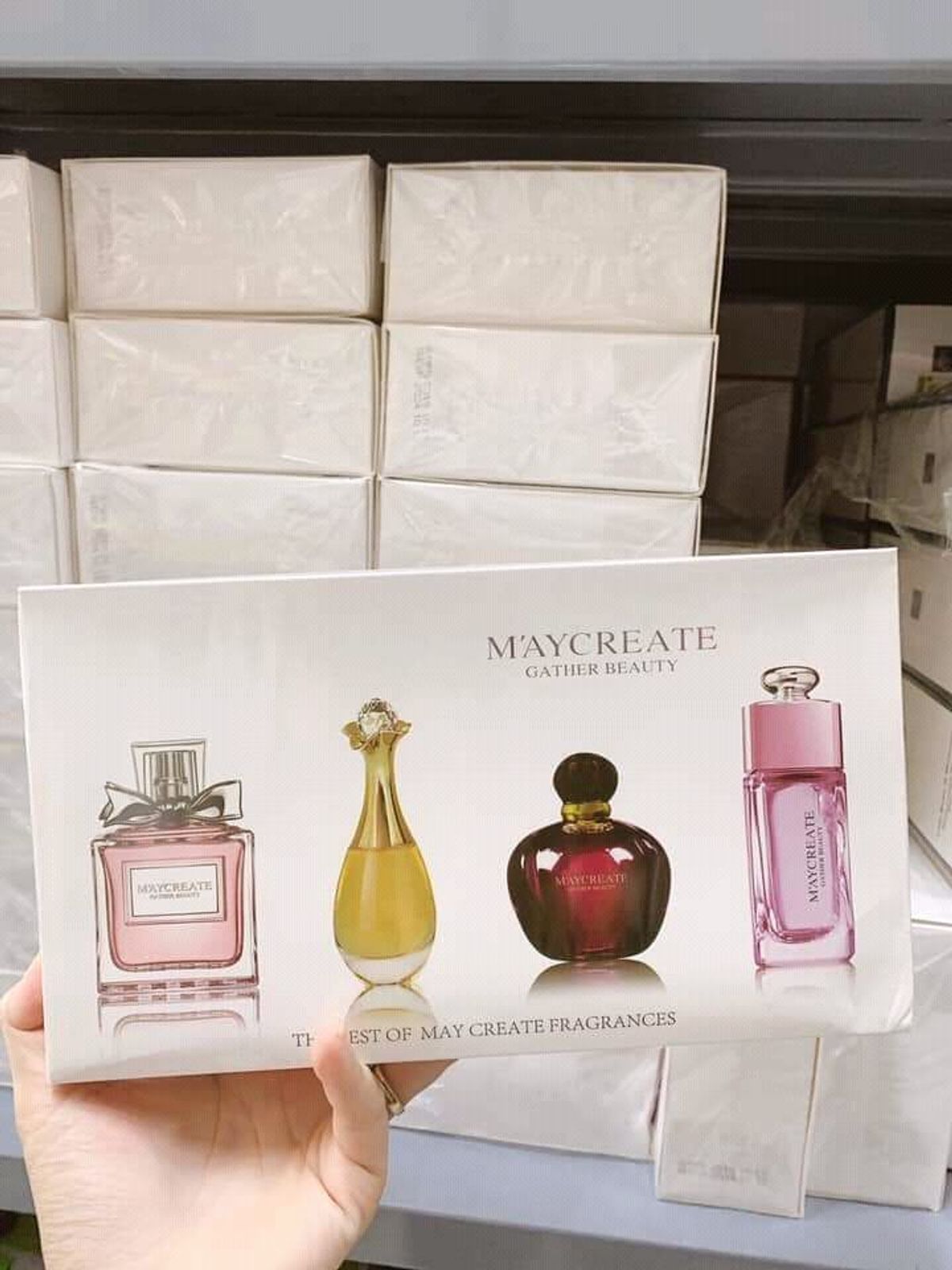 SET 4 lọ nước hoa mini, mỗi lọ 25ml giá sale = 1/4 giá gốc đây ạ Lượt mua trên 50.000 rồi nên em phải gom gấp, nước hoa hãng Maycreate hàng nội địa nổi tiếng của China Set nước hoa này gồm 4 mùi 4 lọ, mỗi lọ 25ml mang theo để trong túi xách cũng rất gọn tiện. Lọ hồng nơ: Sweetheart Lady Perfume - Chiết xuất từ cam, hoa oải hương và nhung hươu - Mùi này thiên về ngọt ngào, lãng mạn Lọ vàng - Chiết xuất từ cam, hoa hồng, mận - Hoà quyện mùi thơm giữa hoa và trái cây gợi đến sự thanh lịch và trưởng thành Lọ tròn đỏ: Red Potion - Chiết xuất từ quế, nho đỏ, hoa hồng - Mùi rất sang, quyến rũ mê hoặc lòng người Lọ tím cao: Charm Lady - Chiết xuất từ chanh, lan nam phi và nhung hươu - Mùi hương nhẹ nhàng, thoáng đạt