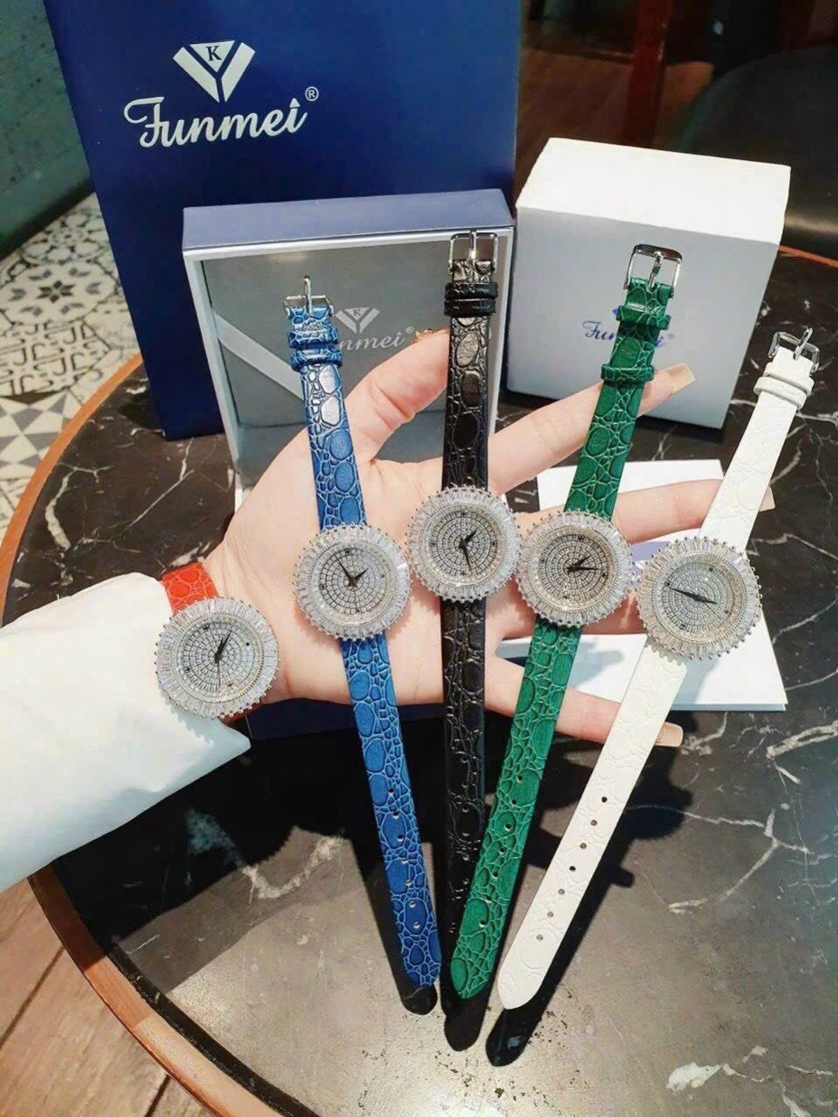 SET QUÀ 20/10 ĐỒNG HỒ NỮ CHÍNH HÃNG FUNMEI F2077 DÂY DA ĐÁ BẠC FULLBOX TEM KÈM DÂY CHUYỀN giá sỉ/bán buôn