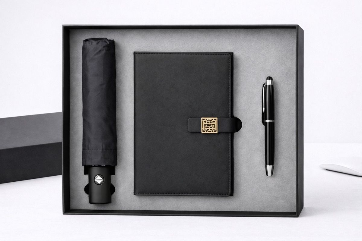 Bộ quà tặng "Black Luxury" là sự kết hợp hoàn hảo giữa tính thẩm mỹ và công năng sử dụng. Với tông màu đen chủ đạo huyền bí và quyền lực, được điểm xuyết bằng các chi tiết kim loại vàng/bạc sang trọng, set quà này là lựa chọn lý tưởng để gửi gắm lời tri ân đến đối tác, khách hàng VIP hoặc nhân viên xuất sắc.