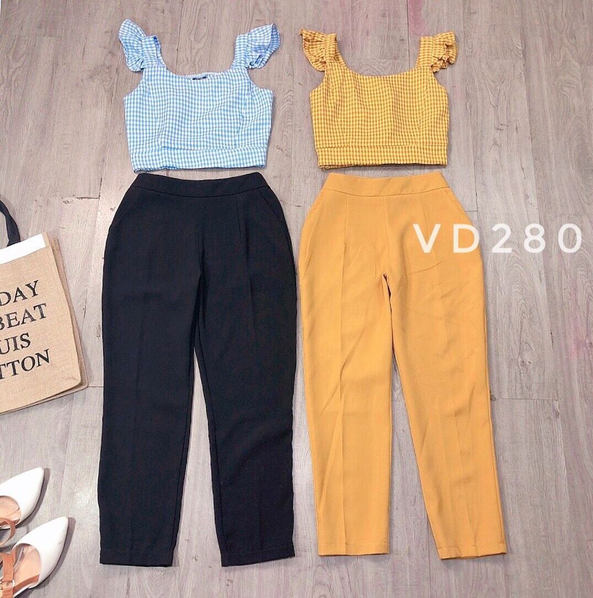 SET QUẦN DÀI ÁO CARO CROPTOP giá sỉ - giá bán buôn
