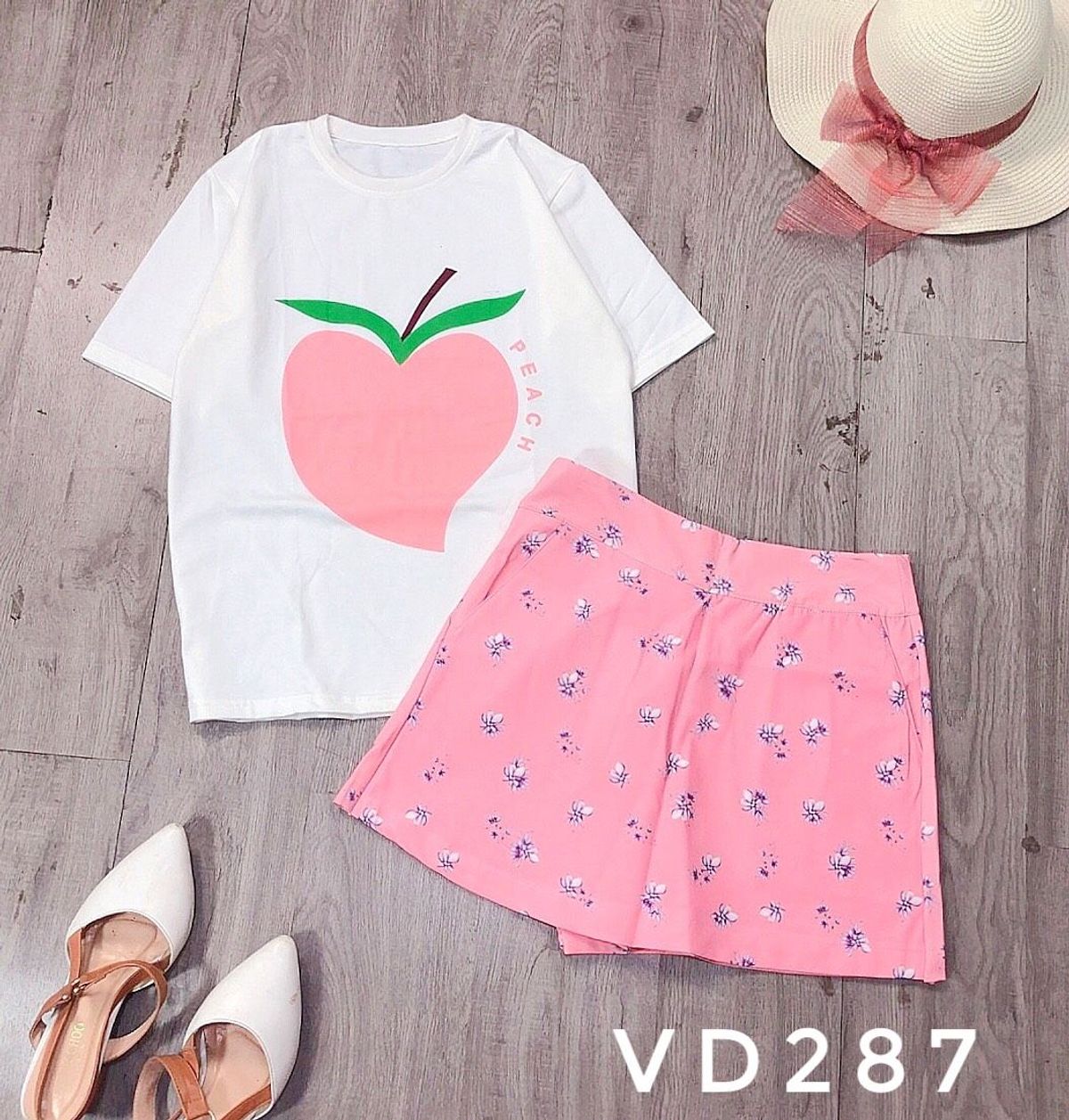 SET QUẦN VÁY ÁO THUN HÌNH TRÁI ĐÀO