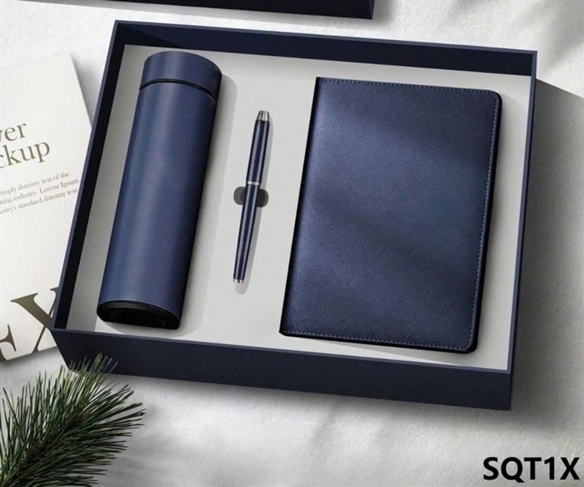 Sổ tay sang trọng bìa da có tặng kèm bút và túi đen làm quà tặng. Phù hợp làm qua tặng cho đồng nghiệp, thầy cô, khách hàng,…