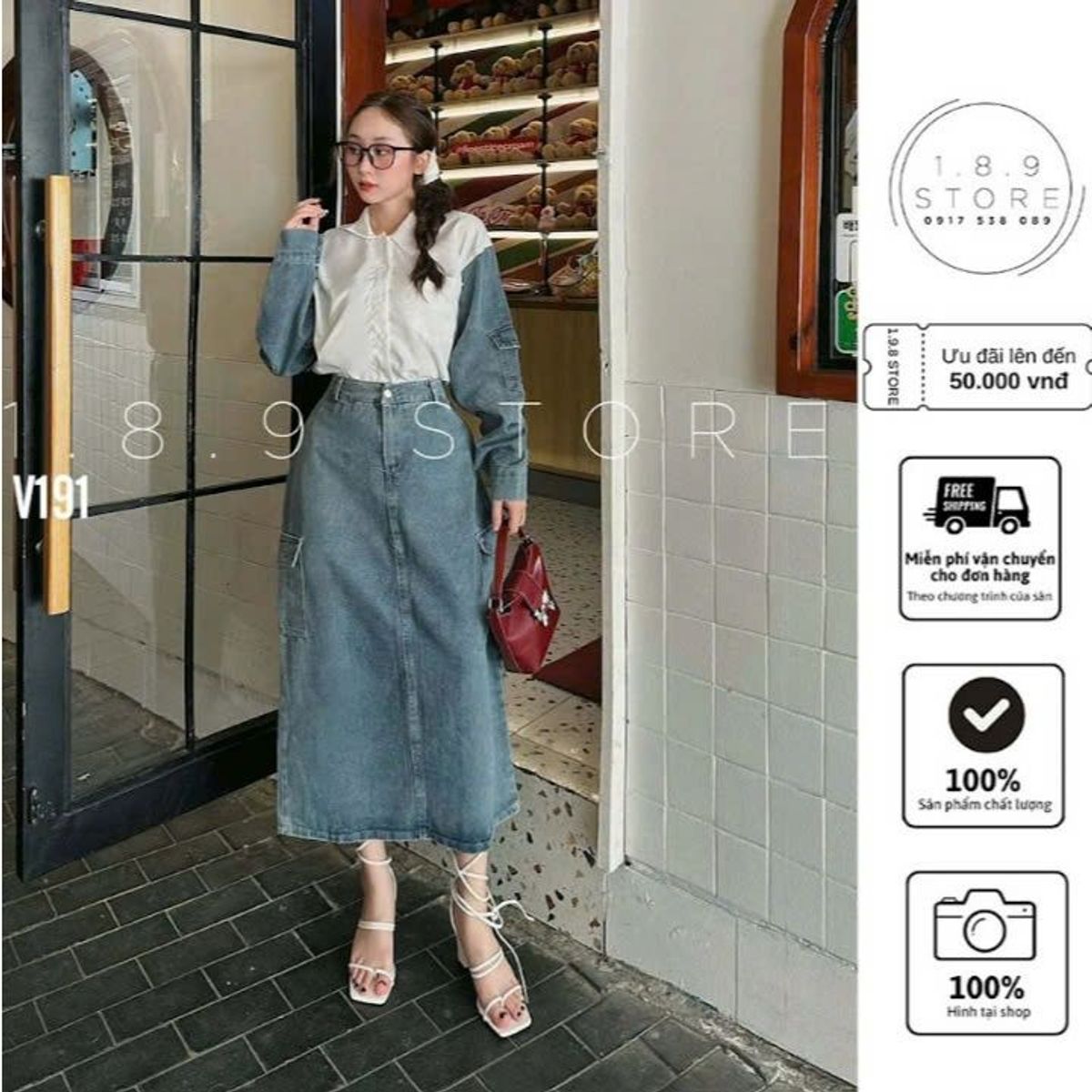 Set váy jean sơ my tay dài kiểu dáng sang chảnh cho các nàng đi cf, đi chơi nàng thơ