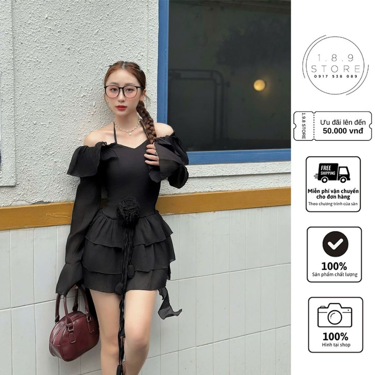 Set váy Jum tầng rớt vai trễ vai có dây tay dài xinh xỉu cho các nàng điệu đà đi cafe