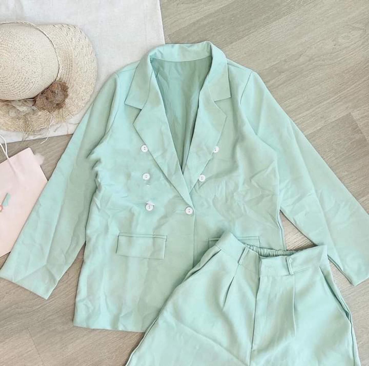 Chị em công ̛̉ và yêu thích vest ngầu vest xinh thì xúc mau ẻm ngay, set này rất Hàn quốc luôn , màu xanh mint tươi trẻ