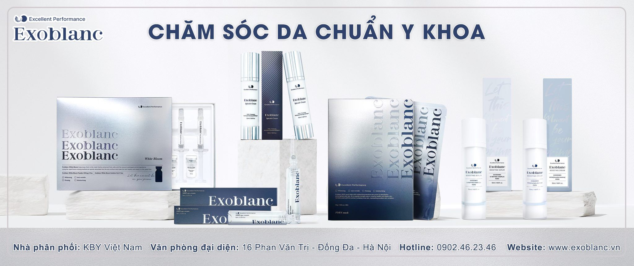 Exoblanc là thương hiệu chăm sóc da chuyên sâu nổi bật do Korean Beauty and Youth phân phối tại Việt Nam, ứng dụng các công nghệ PDRN, Exosome, Peptide, Spicule hiện đại từ Hàn Quốc – được các chuyên gia đánh giá cao về hiệu quả tái tạo, phục hồi, dưỡng trắng và chống lão hóa.