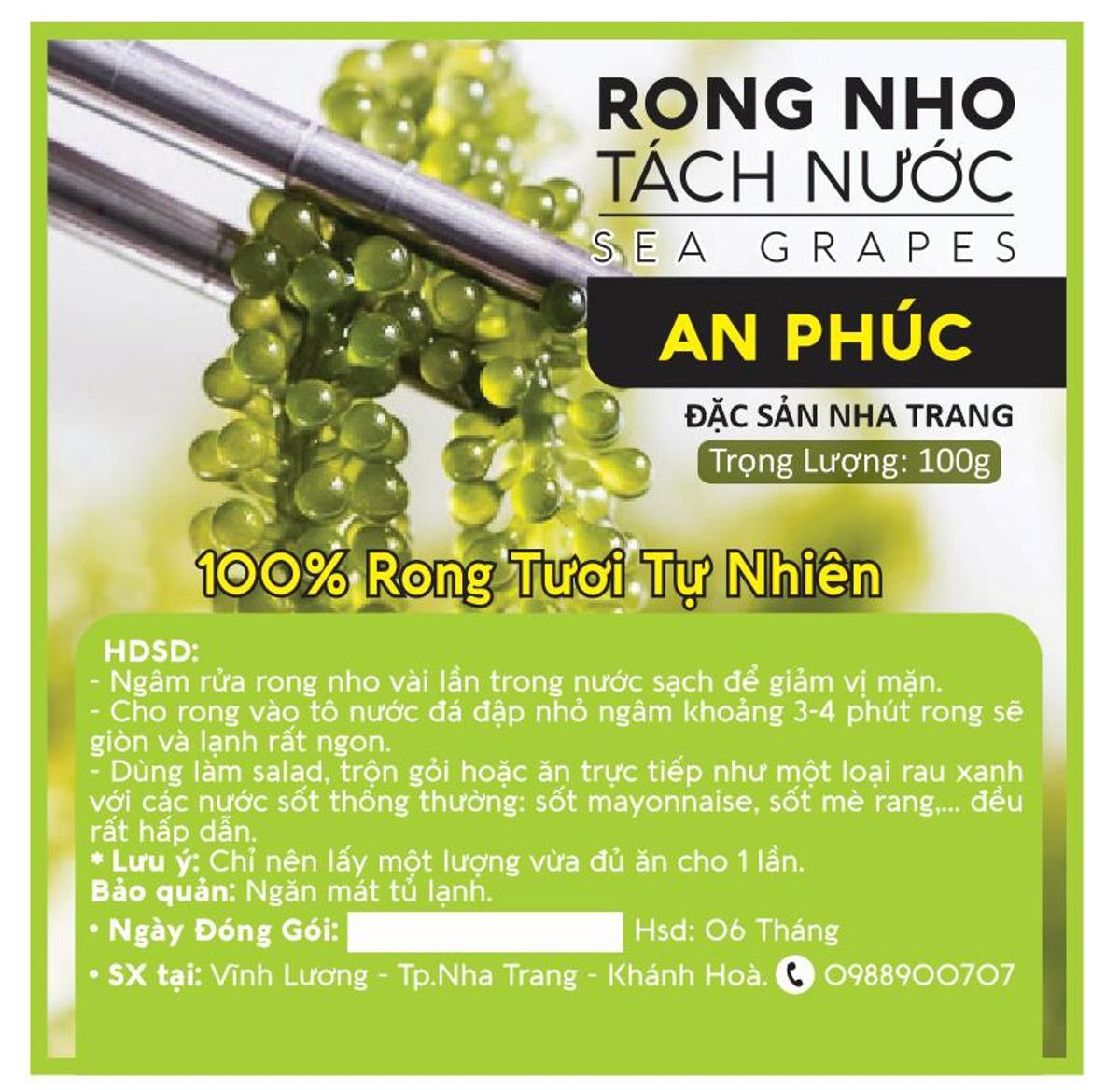 Với thành phần chứa 99% rong nho tươi và 1% muối cùng với công nghệ sản xuất hiện đại nên rong nho tách nước có thể giữ được 6 tháng kể từ ngày đóng gói mà hoàn toàn không cần sử dụng bất cứ chất bảo quản nào.