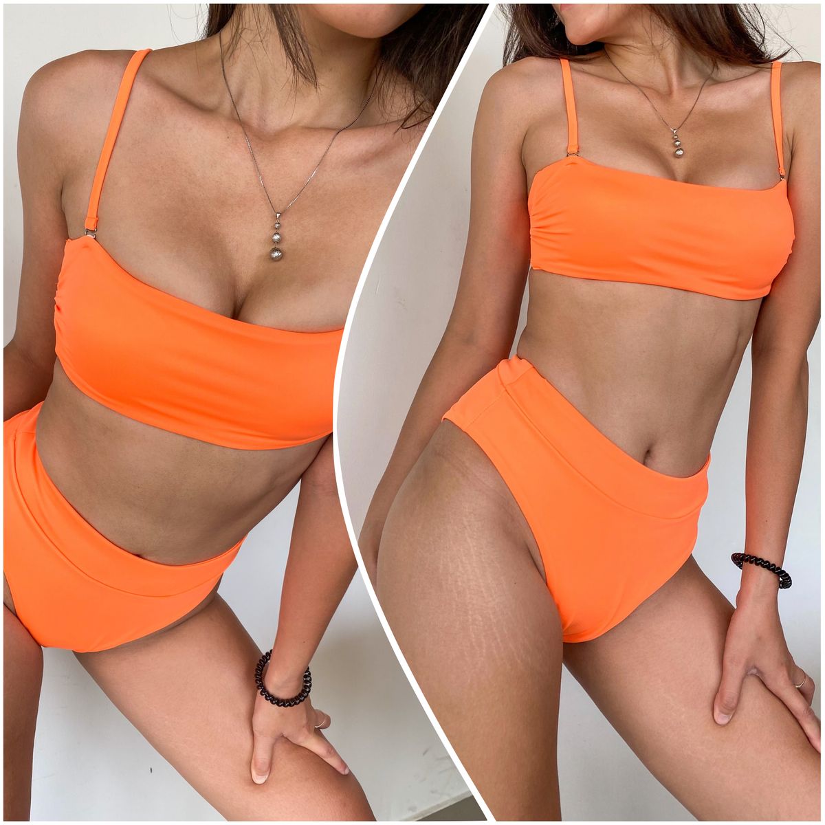 Bikini Hai Mảnh Cao Cấp - Quần Cạp Cao Màu Cam