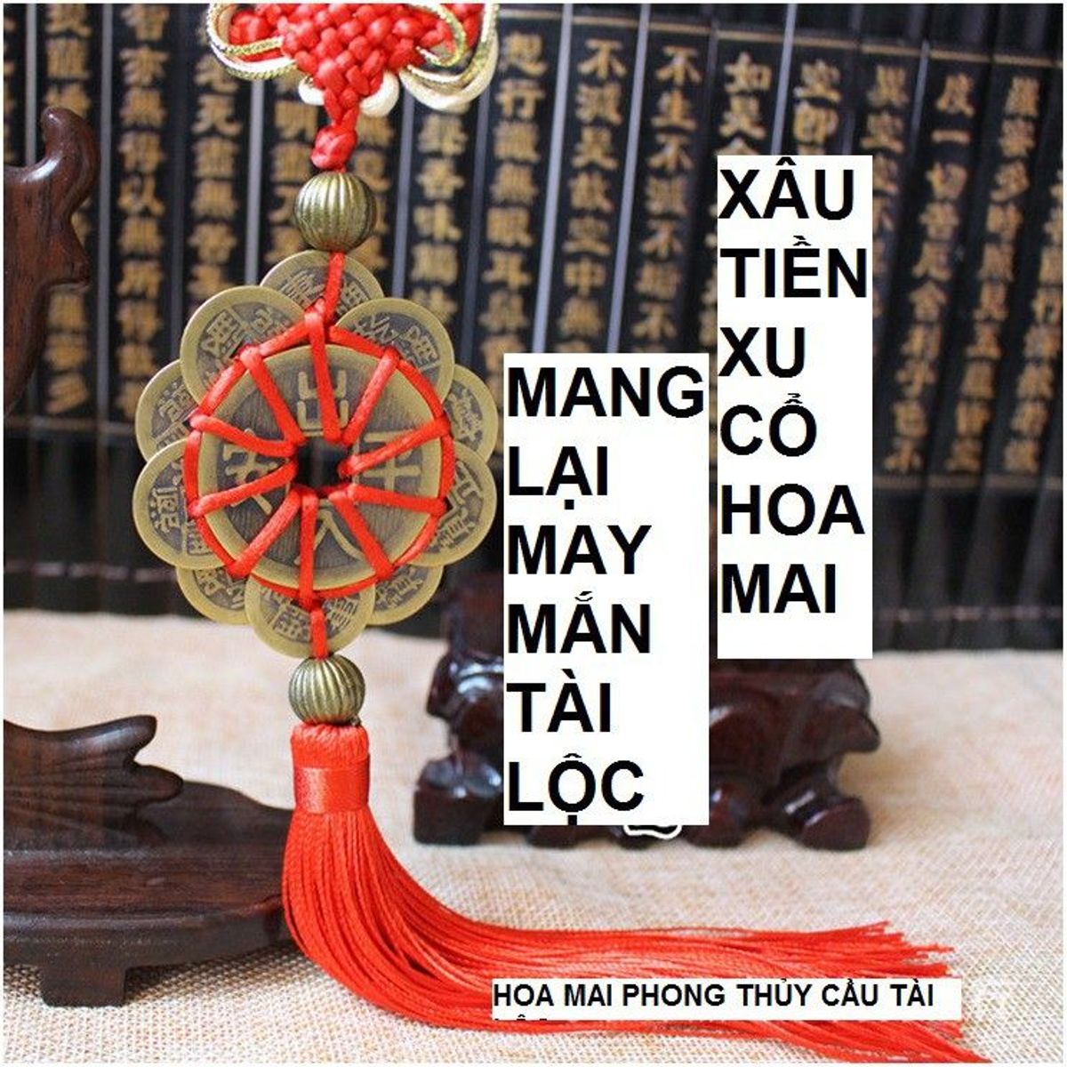Dây xu hoa mai thập toàn được lắp từ 10 cánh nhỏ được thắt từ 10 đồng xu nhỏ, ở giữa là 2 đồng xu lớn 2 mặt, nhìn giống bông hoa mai. Có tác dụng rất lớn trong con đường công danh, sự nghiệp, góp phần làm thăng quan tiến chức và hóa giải kẻ tiểu nhân ám hại…