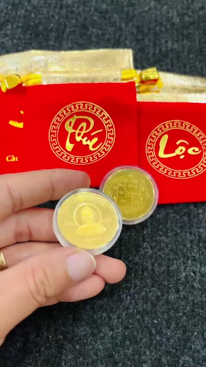 Kích thước đồng xu có đường kính 30mm, trọng lượng 16 gram, độ dày 2,5 mm. Được đúc với chất liệu hợp kim niken và được mạ một lớp vàng óng ánh bên ngoài rất đẹp và bền với thời gian mà không lo phai màu. Cùng với đó mỗi đồng xu mua tại sẽ được bảo quản trong hộp nhựa case trong suốt và tặng kèm một túi gấm đỏ rất lịch sự để biếu tặng.