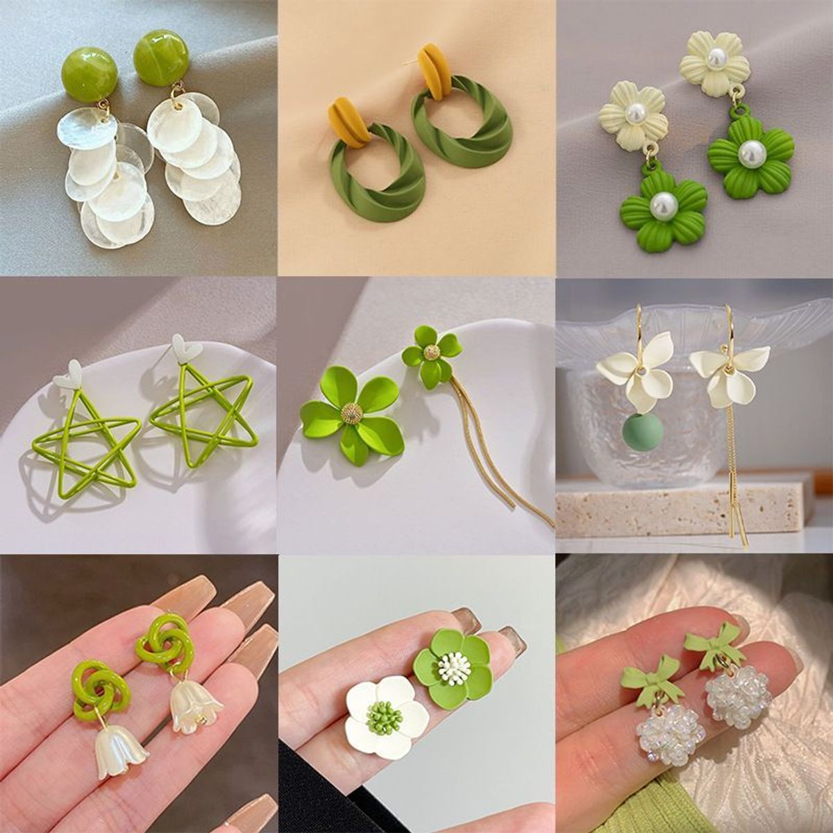 Sỉ hoa tai tone màu xanh hoa lá cực xinh, nổi bật giá sỉ - giá bán buôn