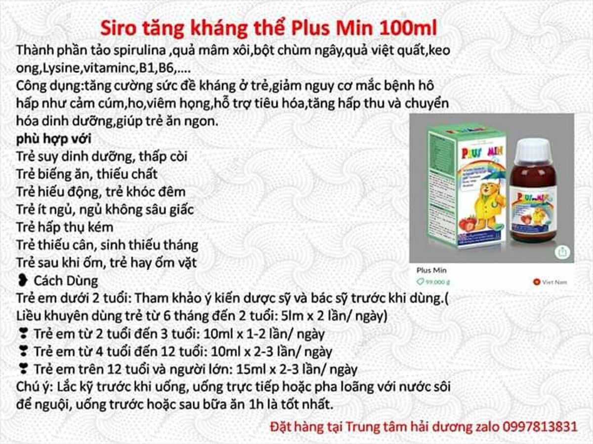 Là siro miễn dịch Plus Min nên dùng cho trẻ từ 2 tuổi trở lên , trẻ em dưới 2 tuổi sử dụng theo đơn hướng dẫn .