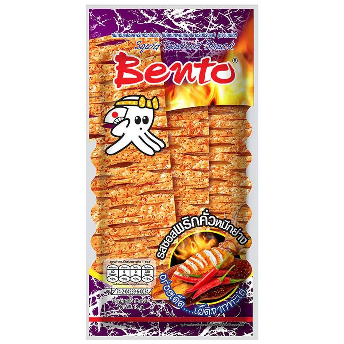 Snack Mực Tẩm Gia Vị Cay Bento 18g - Vị ngon không thể cưỡng lại từ Thái Lan!