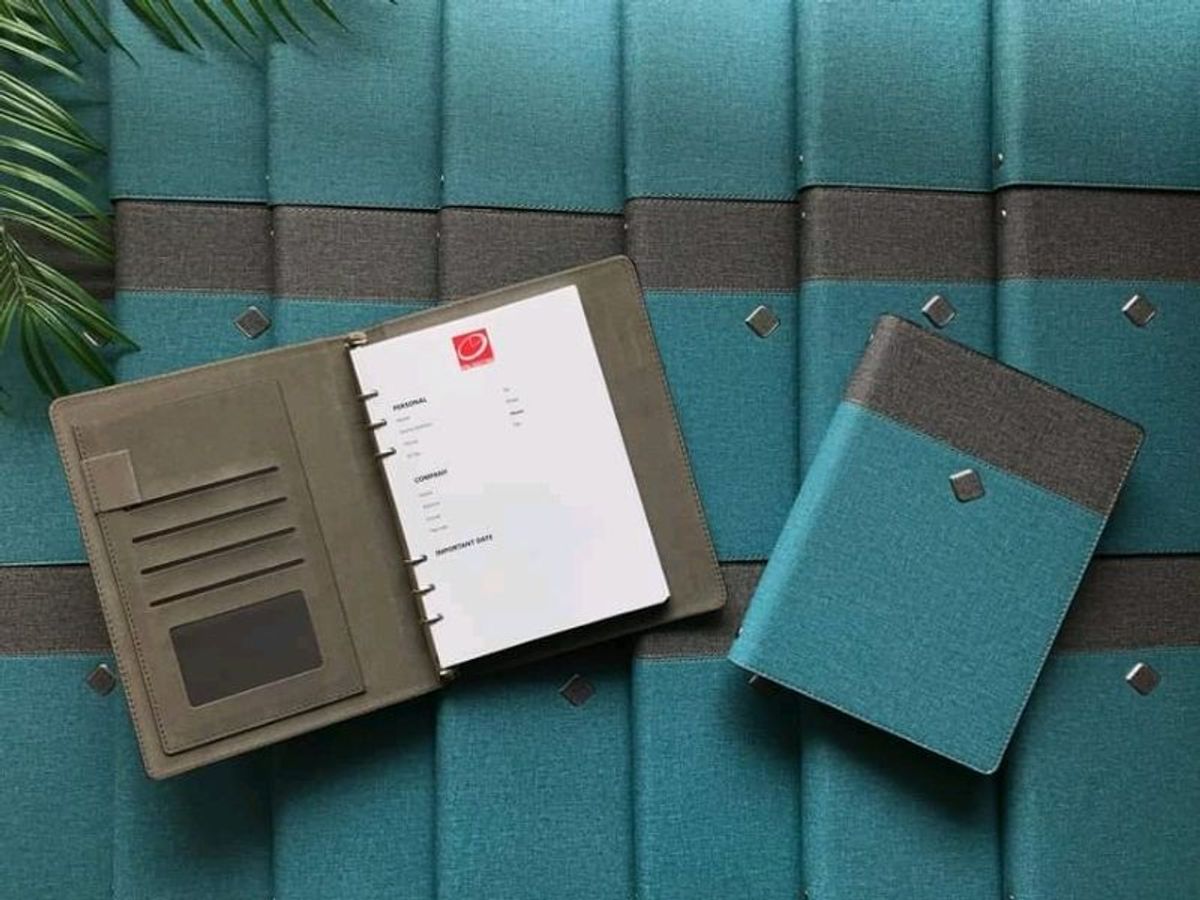 sổ bìa da còng 6 khoen in logo giá sỉ/bán buôn