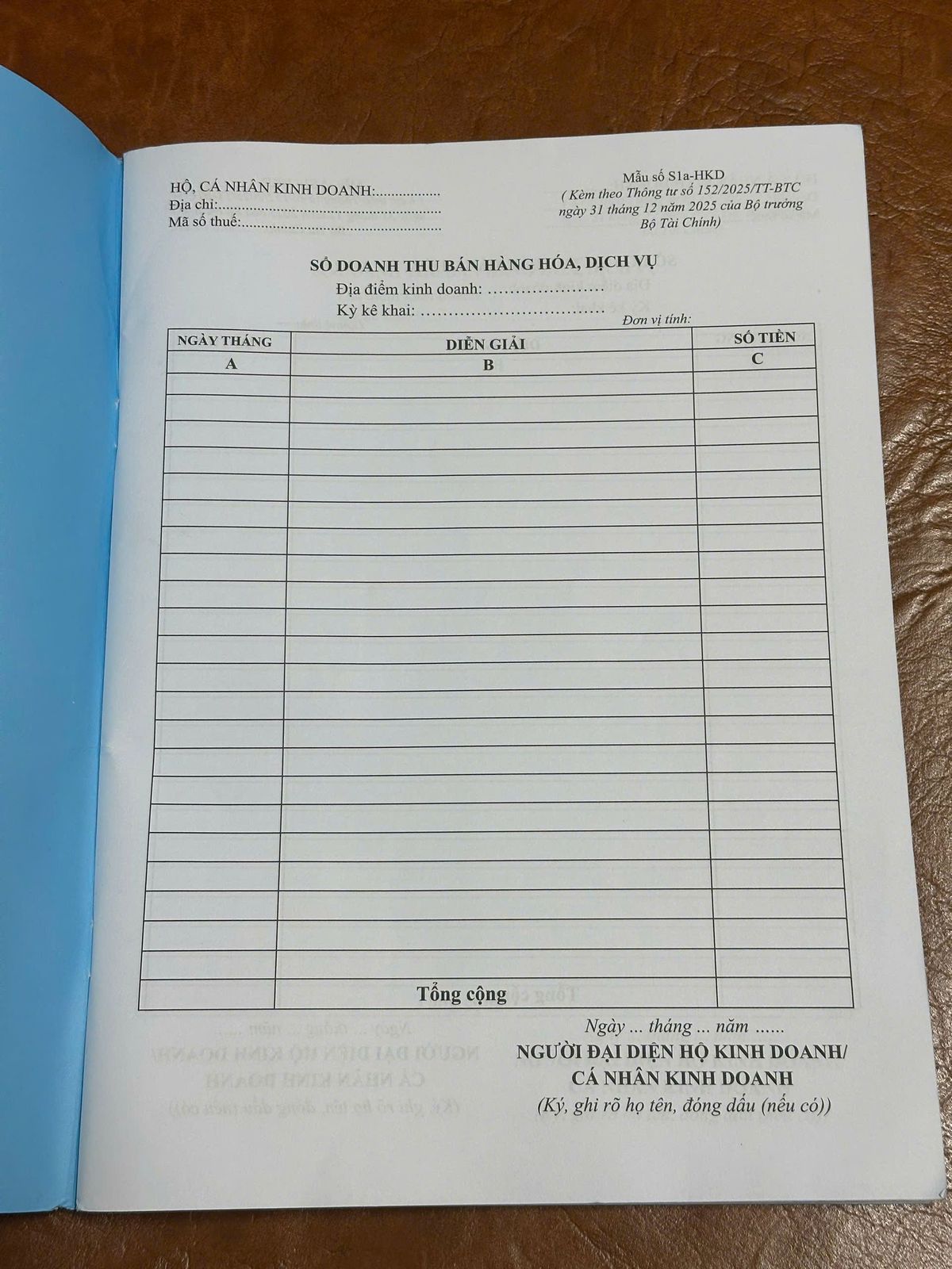 Sổ chi tiết doanh thu bán hàng hóa