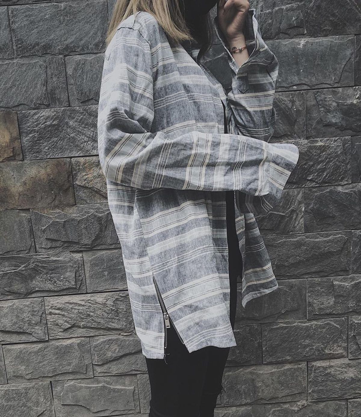 Sơ mi Flannel nữ Just-P màu xám đá có kẻ giá sỉ - giá bán buôn