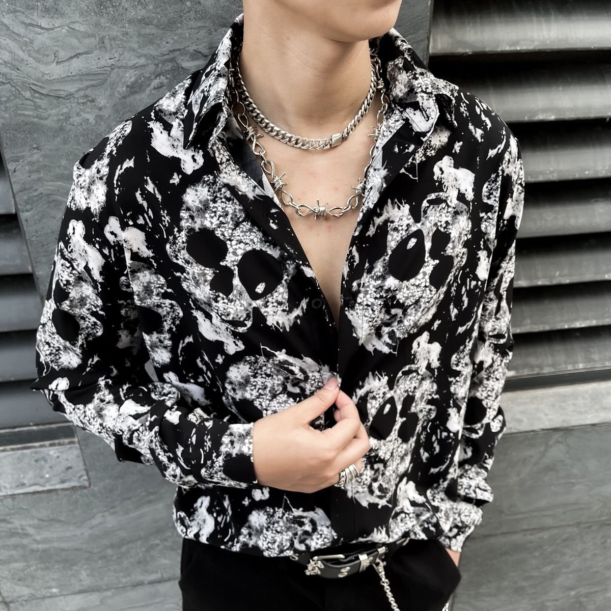 Sơ mi họa tiết đầu lâu giá sỉ/bán buôn