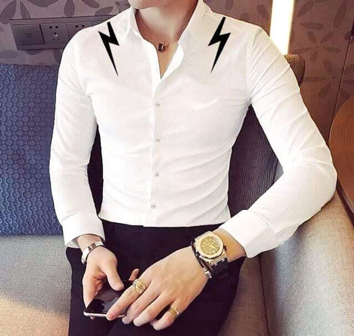 Sơ mi in Sấm vai sĩ 105k lẻ 150k Vải kate lụa co giãn nhẹ, màu sắc có thể hơi khác nhé Size: M