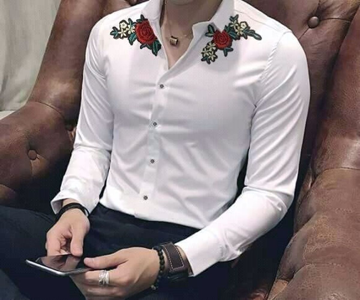 Sơ mi nam thêu hoa 2 vai giá sỉ - giá bán buôn