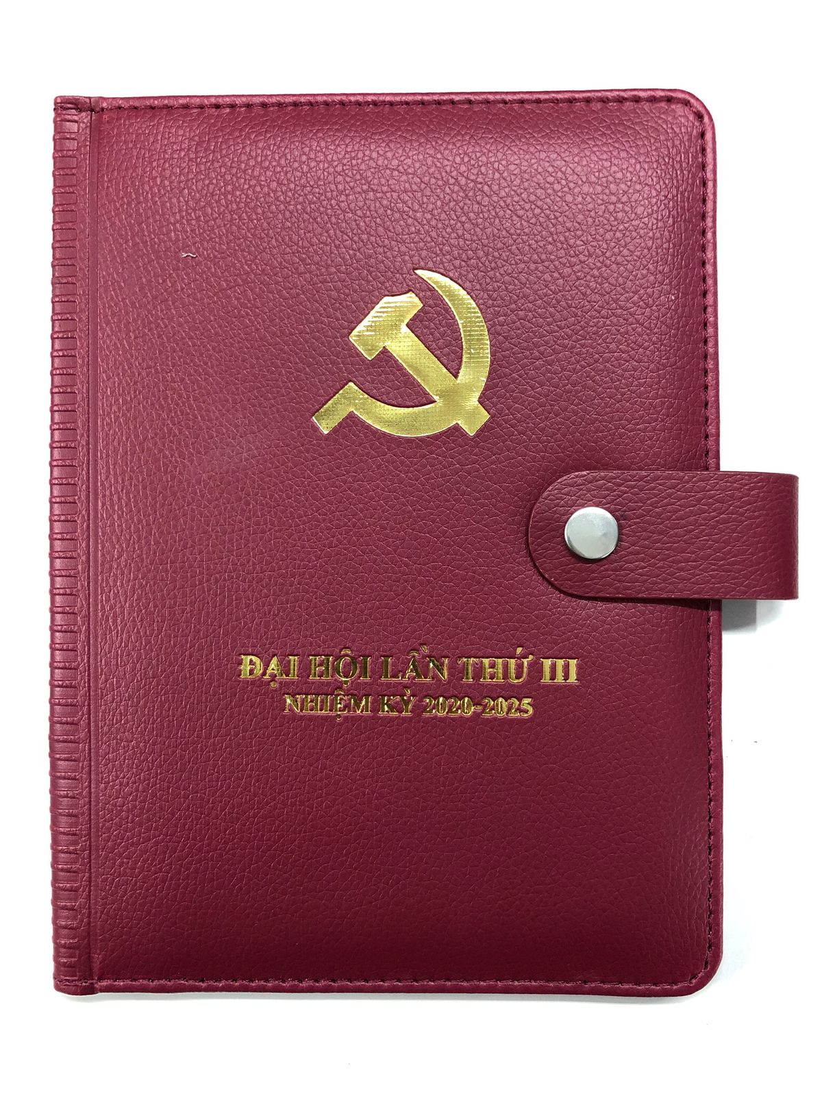 CÔNG TY THÀNH PHÁT.. chuyên sản xuất và phân phối sổ tay Đảng Viên, Sổ tay Đại Hội, Trình ký Đại Hội Đảng. - Sổ Kích thước: 15x21cm . - Màu da: Đỏ, xanh, nâu. bìa sổ có tai khuy bấm - Ép Logo Nhũ vàng - Ruột sổ: 200 trang.( ảnh chân dung Bác Hồ, trang thông tin cá nhân,22 trang Nội dung đại hội, 140 trang dòng kẻ) Hàng có sẵn và nhận đơn đặt hàng theo yêu cầu của khách.