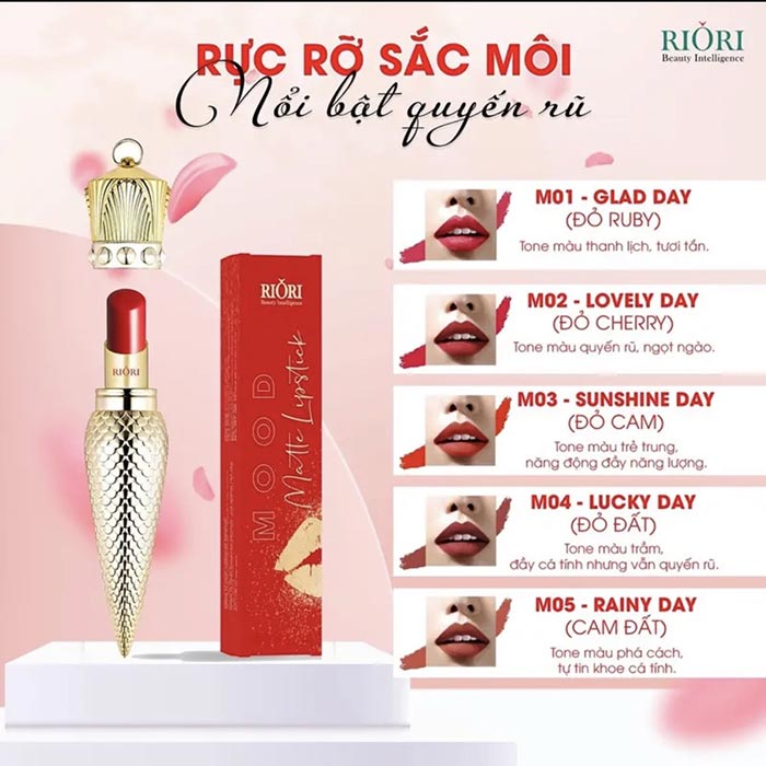 SON MÔI MOOD RIORI MATTE LIPSTICK 5 MÀU TRENDY - CÔNG DỤNG: