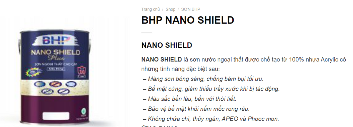 NANO SHIELD là sơn nước ngoại thất được chế tạo từ 100% nhựa Acrylic có những tính năng đặc biệt sau: