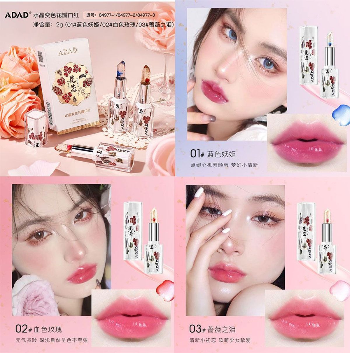 Son Thạch Hoa Khô ADAD 2g – Son Dưỡng Môi Đổi Màu, Lâu Trôi, Căng Mọng Tự Nhiên giá sỉ/bán buôn