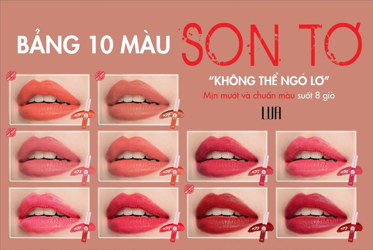 - Thông tin sản phẩm: Là dòng son “Hot trend” mới và đình đám nhất của hãng LUA, Son tơ với công nghệ “Kéo tơ 4D” độc quyền tại thị trường Châu Á sẽ chiều lòng kể cả những khách hàng “khó tính” nhất. Khi swatch son lên môi, bạn sẽ dễ dàng nhìn thấy và cảm nhận hình ảnh những sợi tơ mỏng nhẹ nhàng lấp đầy và phủ tận từng kẻ môi, màu lên cực chuẩn kết hợp công thức “serum cực đại” cho đôi môi căng bóng siêu mịn mượt.