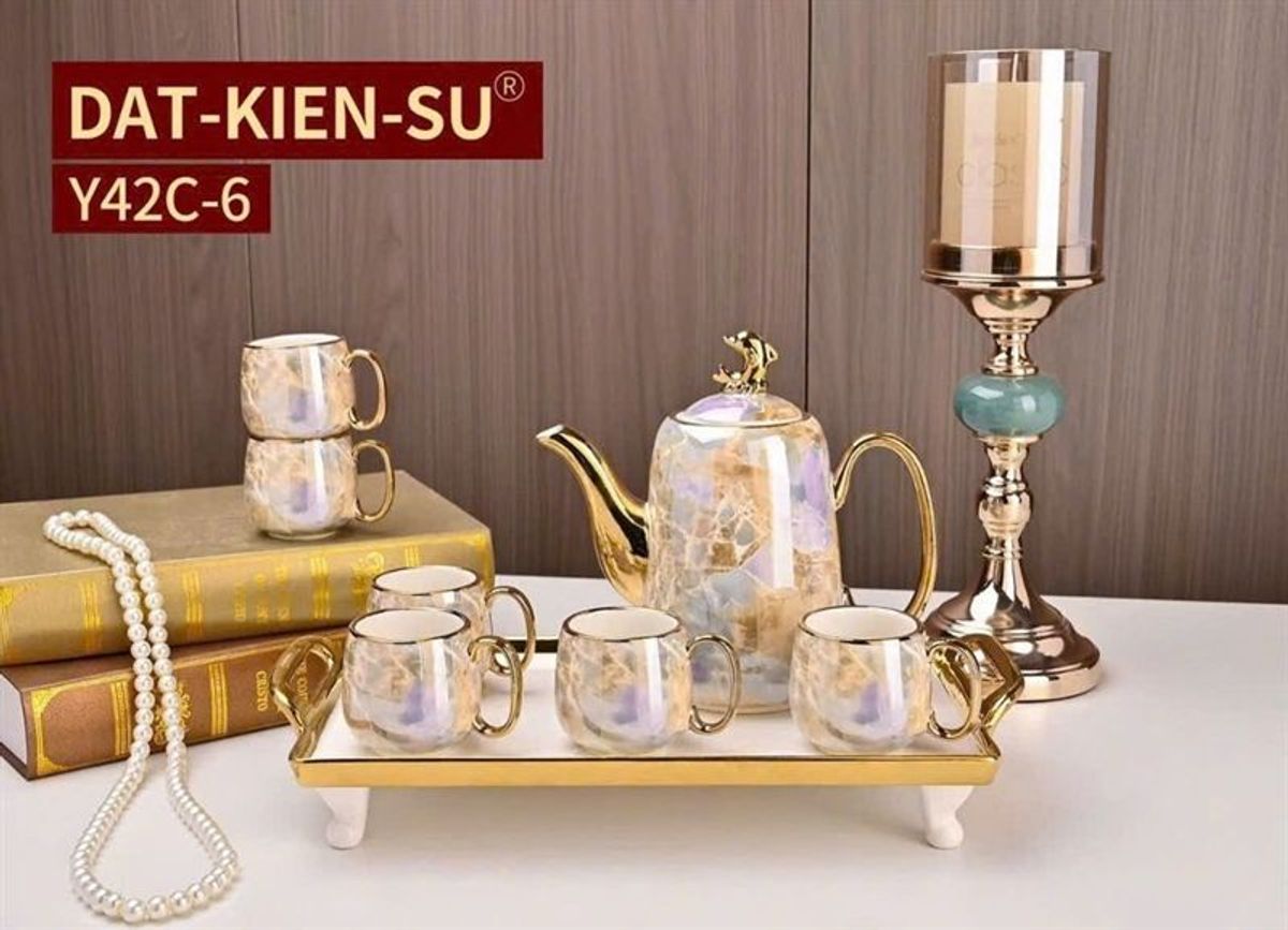 Bộ trà sứ hoa vân đá phong cách Bắc Âu cao cấp kèm khay sứ mạ vàng sang chảnhhh. Trang trí phòng khách, thưởng trà, làm quà tặng...