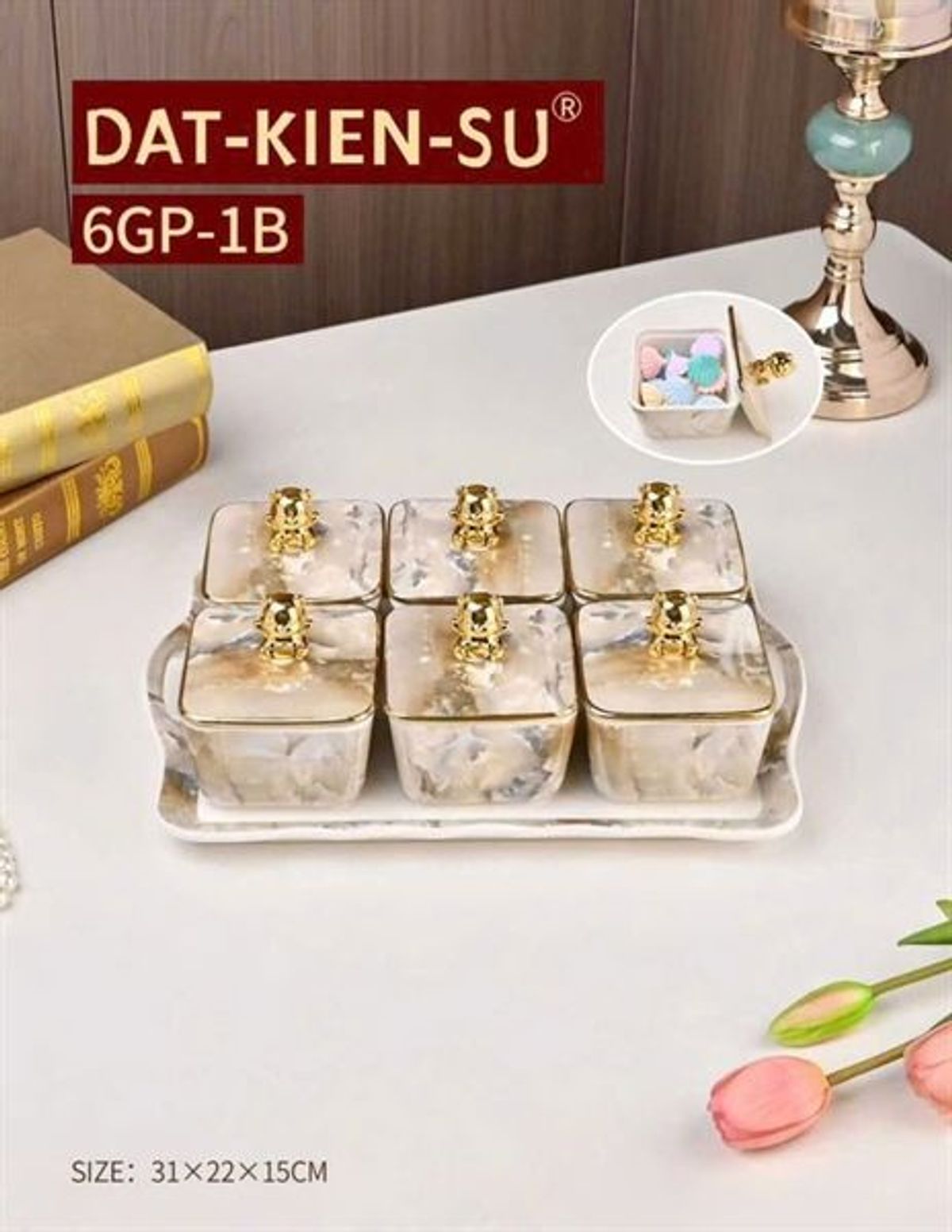+ Đặc biệt vào những ngày Tết trên bàn lại càng không thể thiếu 1 khay bánh mứt nữa ạ, nhưng riêng về khay đựng này thay vì hết những ngày Tết chúng ta cất vào thì mẫu này chúng ta còn có thể sử dụng được để đựng trái cây ăn hay lấy riêng từng hủ đựng đựng vật dụng hay tiêu muối trong bếp ạ.