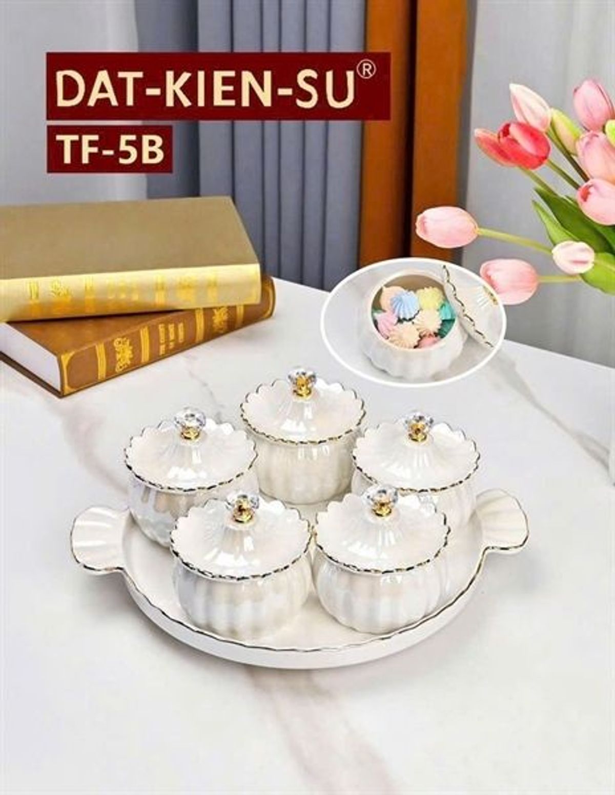 + Đặc biệt vào những ngày Tết trên bàn lại càng không thể thiếu 1 khay bánh mứt nữa ạ, nhưng riêng về khay đựng này thay vì hết những ngày Tết chúng ta cất vào thì mẫu này chúng ta còn có thể sử dụng được để đựng trái cây ăn hay lấy riêng từng hủ đựng đựng vật dụng hay tiêu muối trong bếp ạ.