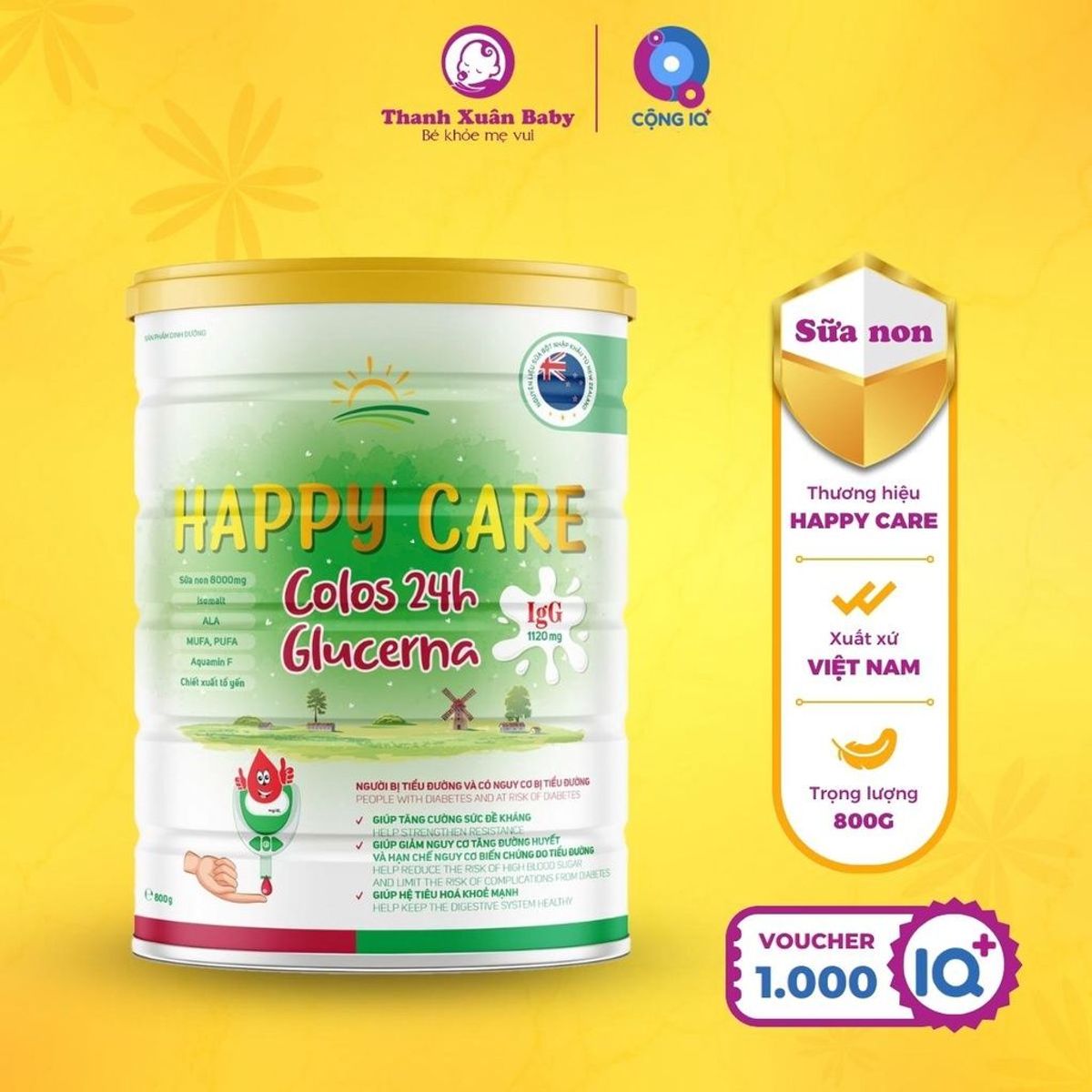 - Sữa non Happy Care Colos 24h Glucerna là sản phẩm chuyên biệt chuyên biệt cho người đái tháo đường, tiền đái tháo đường. Với công thức tiên tiến, Happy Care Glucerna sẽ giúp ổn định đường huyết, hỗ trợ tim mạch, phục hồi sức khỏe.