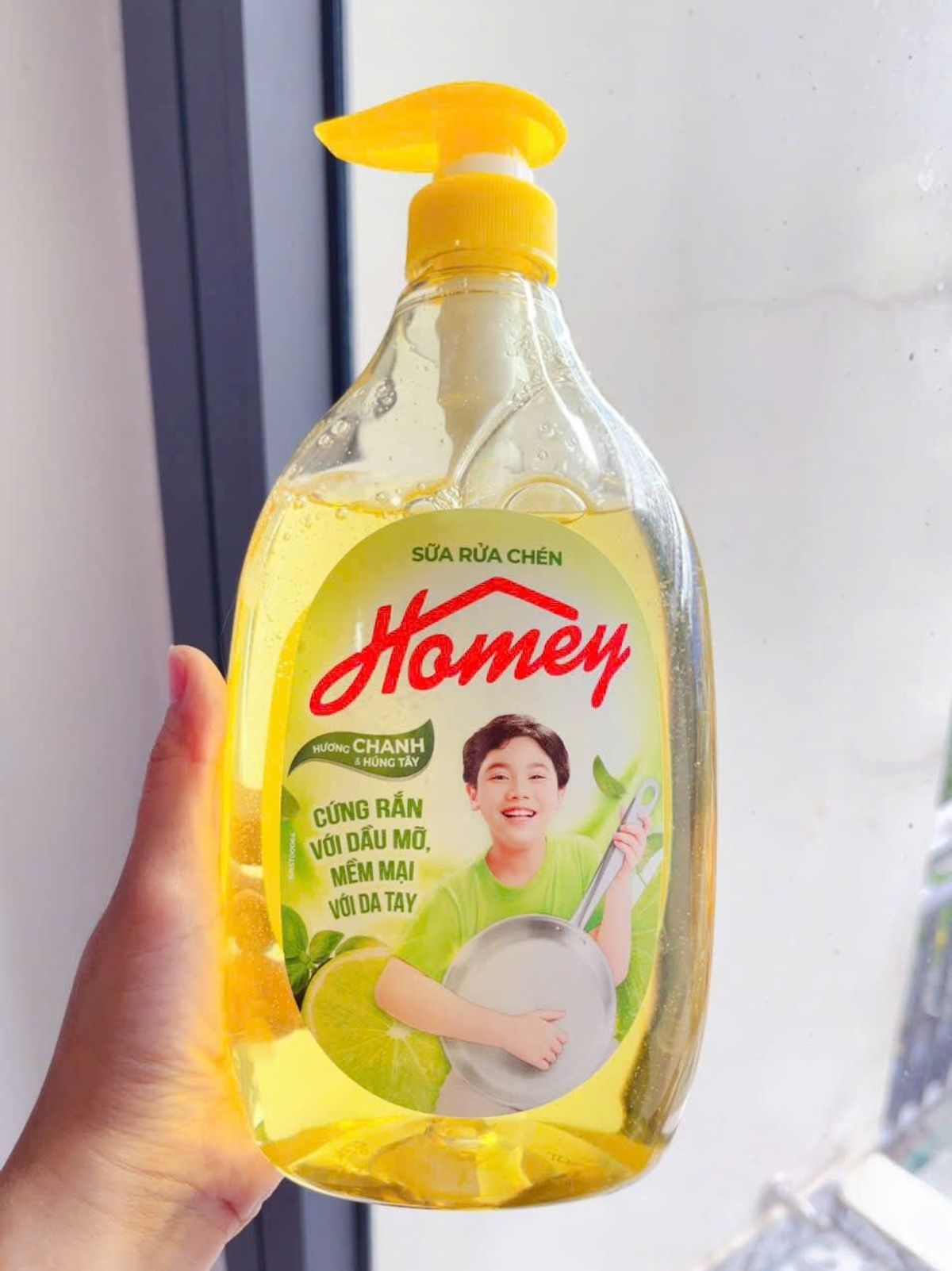 Nước rửa chén Homey còn diệt khuẩn, cho chén bát sạch bong kin kít và lưu lại hương thơm nhẹ nhàng. Kiểu dáng chai hiện đại, thu hút. Sản phẩm an toàn cho sức khỏe, không gây hại cho da tay.