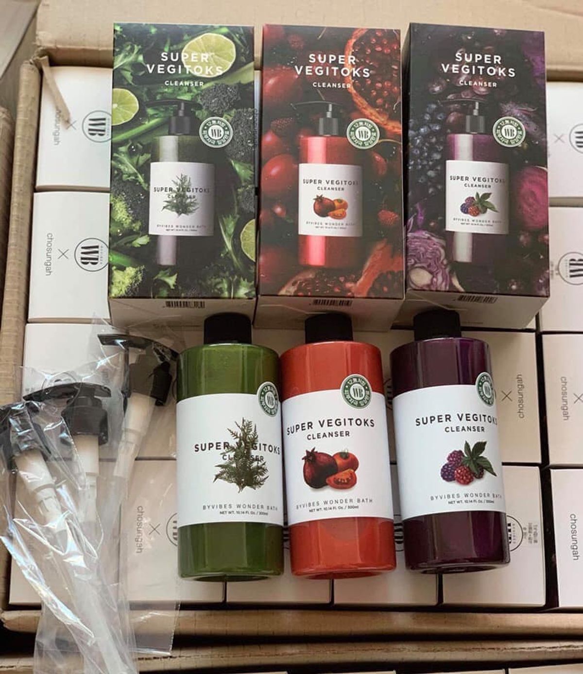 - Sữa rửa mặt sủi bọt chiết xuất từ rau củ Wonderbath Super Vegitoks Cleanser được biết đến là một sản phẩm giúp thải độc da nhờ nguyên lý sủi bọt. Len lỏi vào từng lỗ chân lông giúp cuốn bay bụi bẩn, bã nhờn sâu trong da. Đồng thời cung cấp vitamin từ rau củ, giúp da căng bóng, mịn màng và bừng sáng ngay sau khi sử dụng.