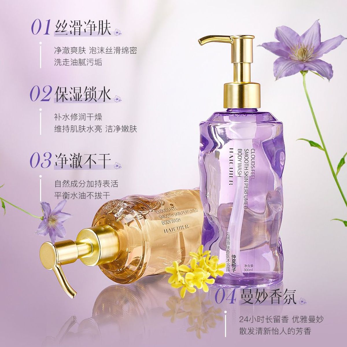 Sữa tắm Haicuier hương hoa 300ml – Dưỡng ẩm, lưu hương 24h, làm mềm mịn da giá sỉ - giá bán buôn
