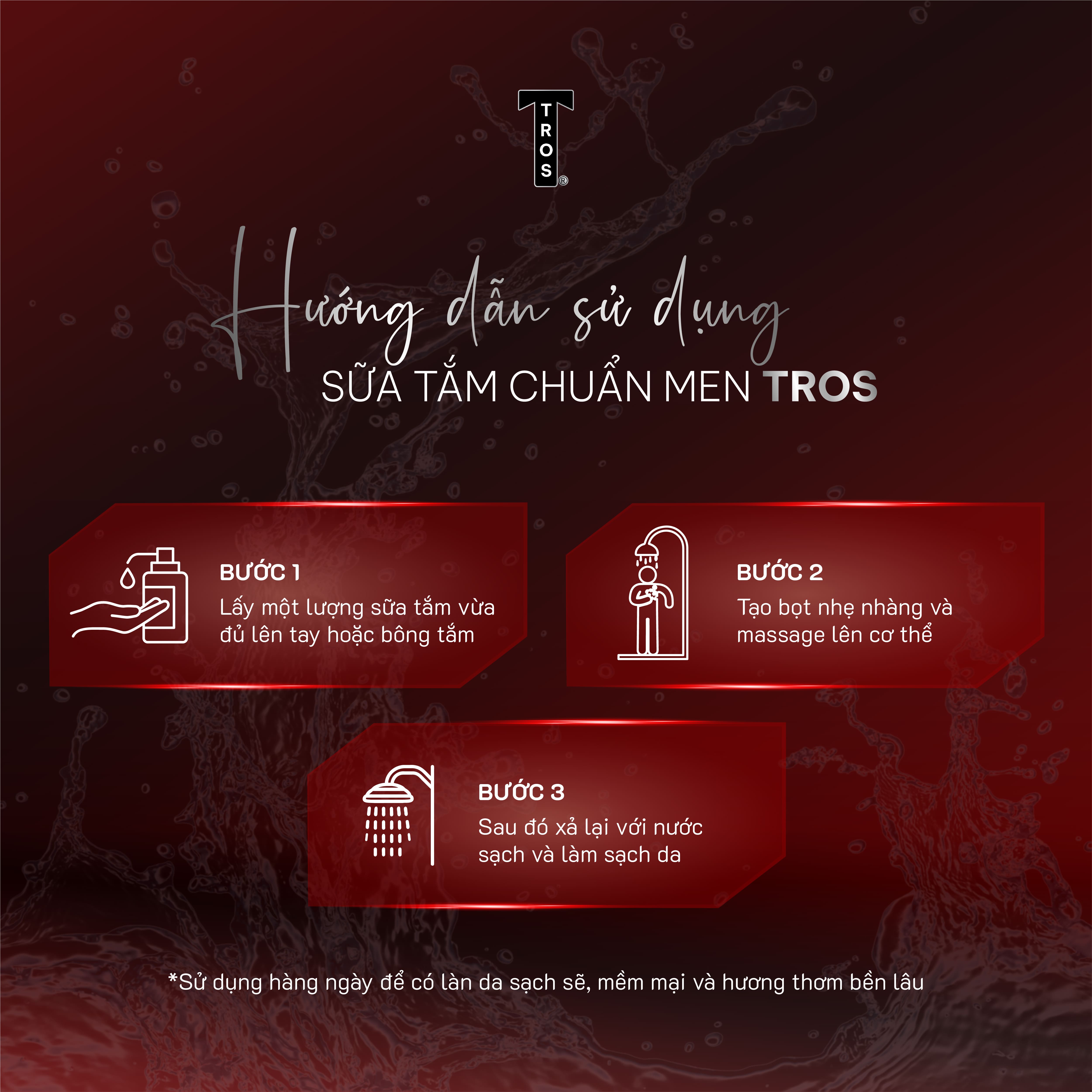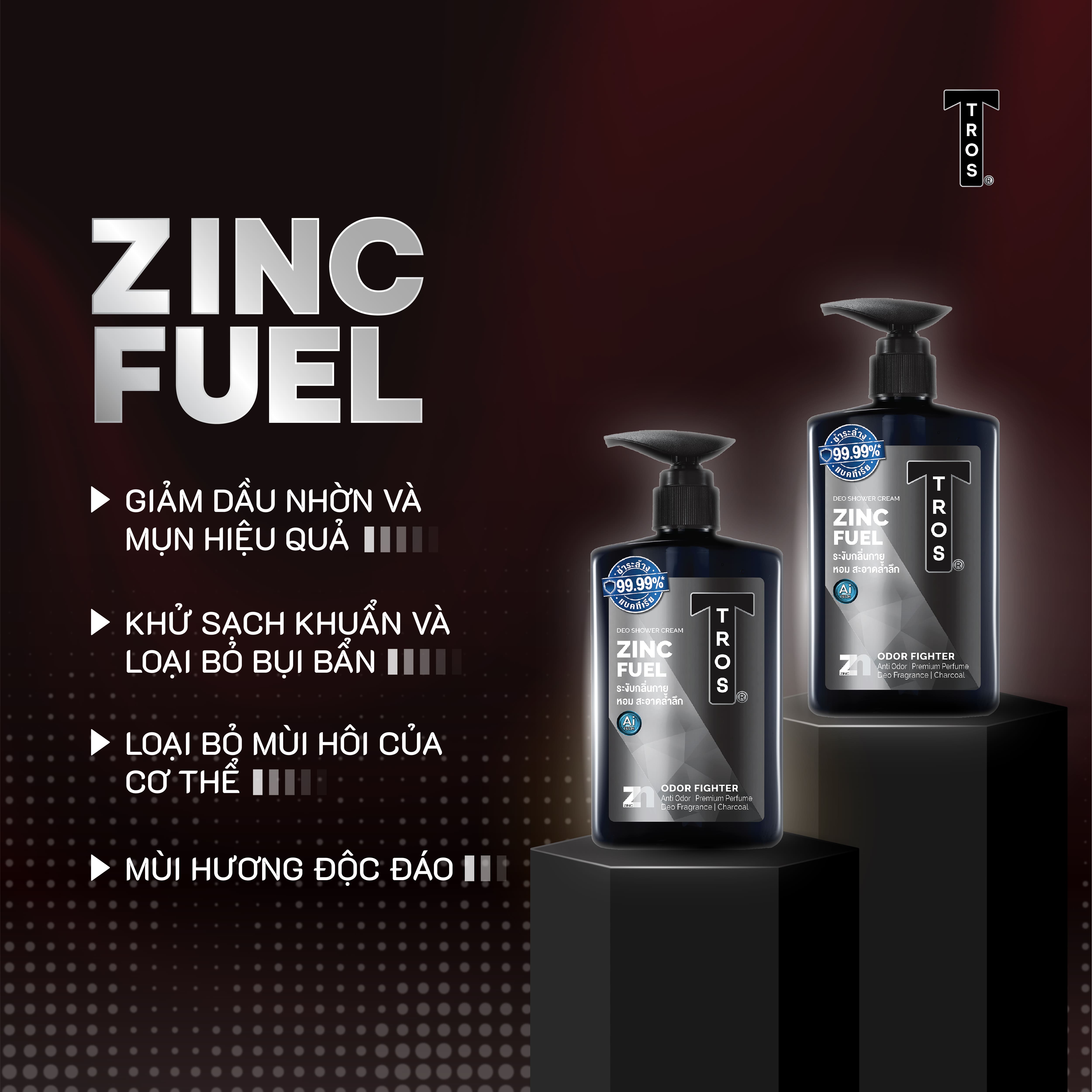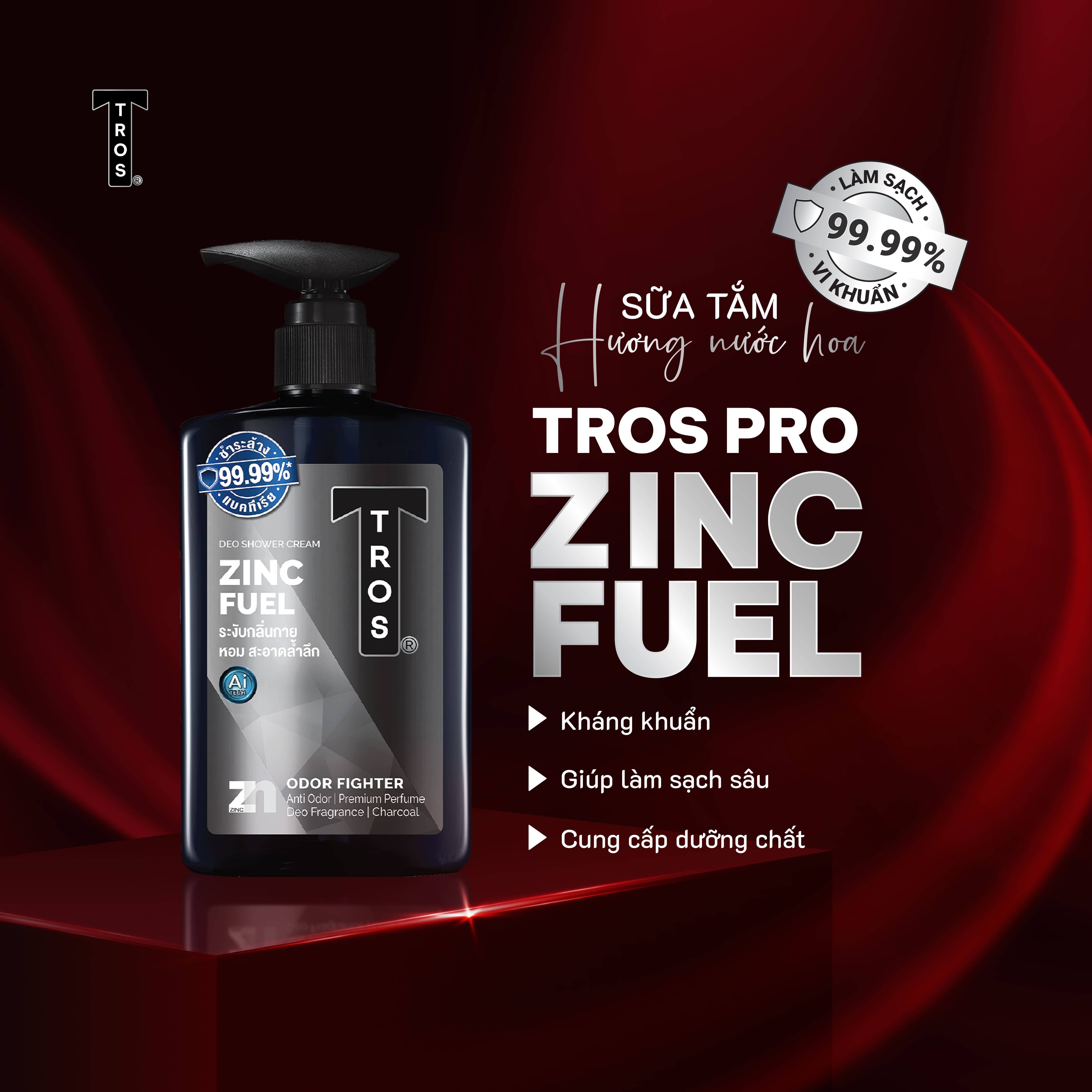 - Sữa tắm TROS Pro Zinc Fuel sở hữu hương thơm đa tầng với sự kết hợp hoàn hảo của các thành phần: