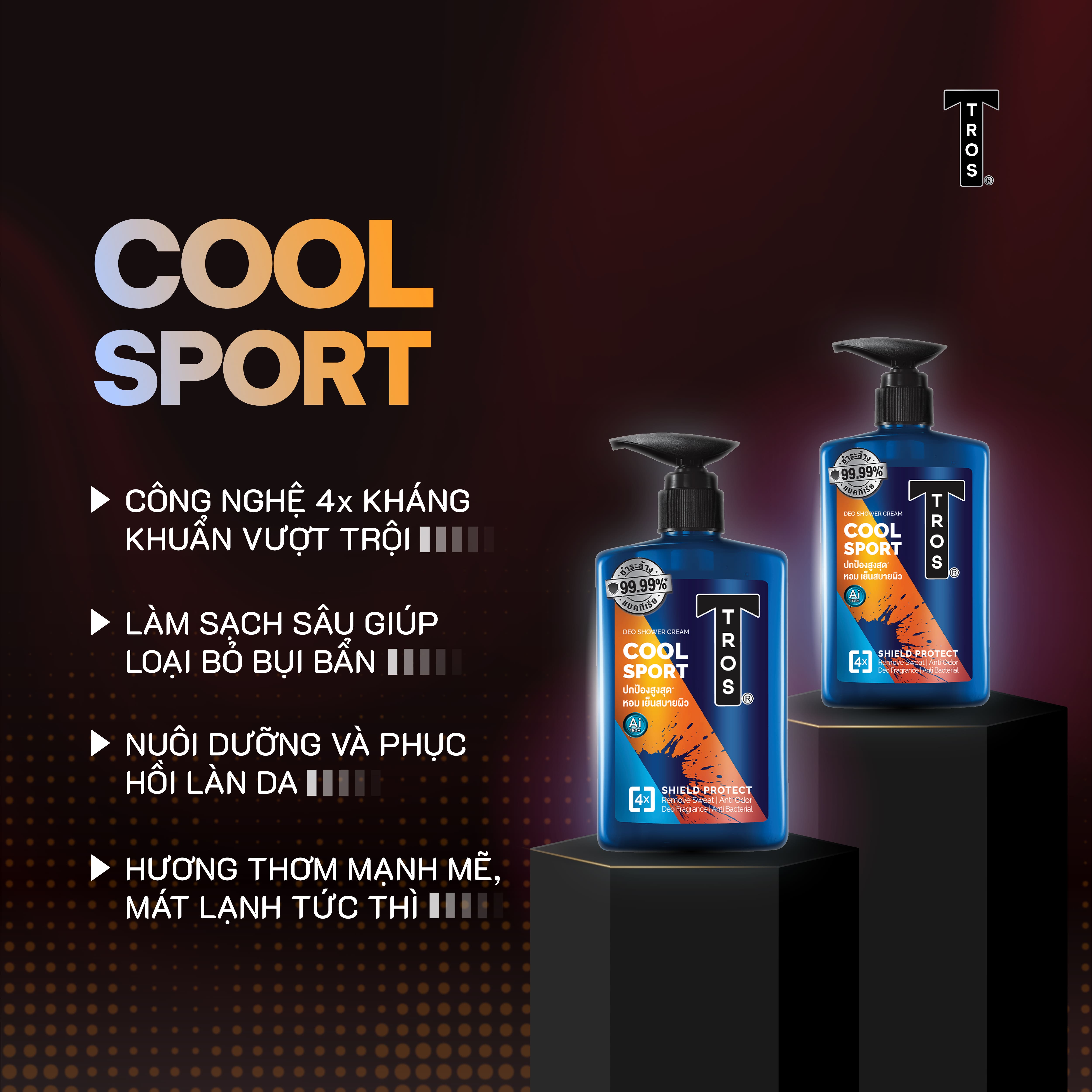 - Sản phẩm dành riêng cho người vận động: TROS Pro Cool Sport Deo Shower Cream là lựa chọn tuyệt vời cho những người yêu thích thể thao, vận động viên, hoặc bất kỳ ai có lối sống năng động.