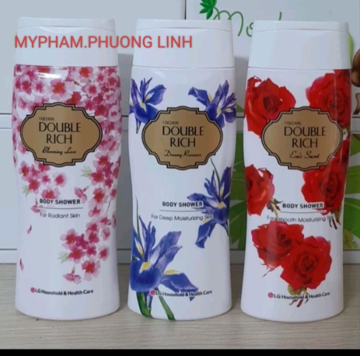 CAM KẾT HÀNG CHÍNH HÃNGSX LG Household & Health CareHSD: 3 Năm kể từ ngày SXSữa tắm Double Rich là sự kết hợp các thành phần thiên nhiên như lô hội, tinh dầu jojoba giàu vitamin E và tinh dầu hoa hồng. Sữa tắm giúp phục hồi sức sống, nuôi dưỡng và cân bằng độ ẩm.Có 3 hương:- Hương hoa Hồng- Hương hoa anh Đào- Hương hoa Iris *** HƯỚNG DẪN SỬ DỤNG:• Làm ướt da.• Lấy một lượng sữa tắm tinh vừa đủ cho vào lòng bàn tay hoặc bông tắm tạo bọt, Massage nhẹ nhàng.• Tắm lại với nước Tránh để sữa tắm dây vào mắt, nếu có, rửa kỹ với nước Bảo quản nơi khô ráo, thoáng mát, tránh xa tầm tay trẻ emLưu ý: Tránh xa tầm tay trẻ em.