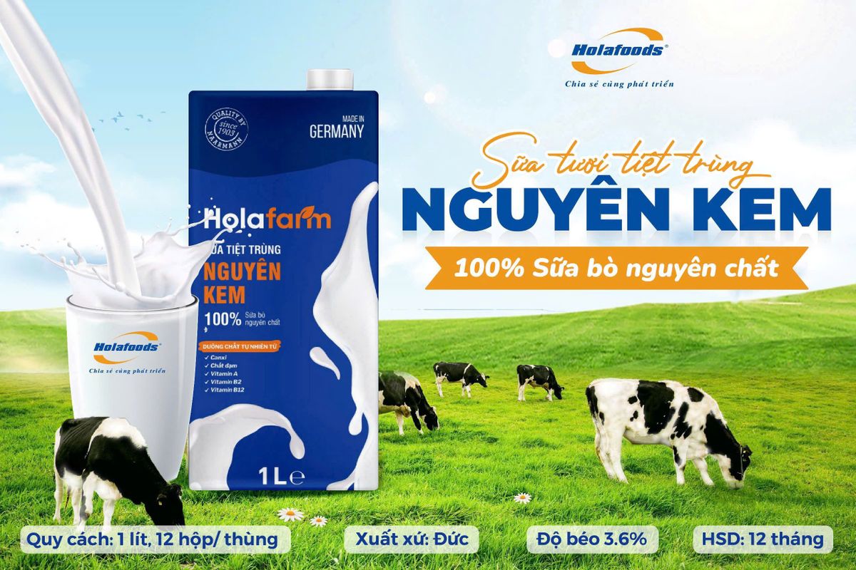 SỮA TƯƠI TIỆT TRÙNG NGUYÊN KEM HOLAFARM – 100% sữa bò nguyên chất